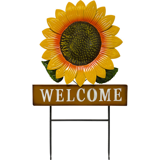 Land & sea metal welcome sunflower yard art, 30"h