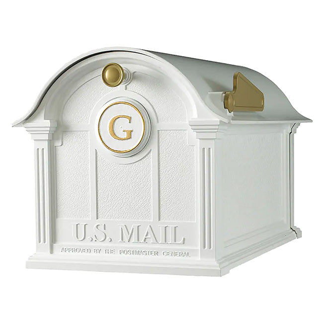 Whitehall deluxe custom balmoral mailbox quint, white/gold