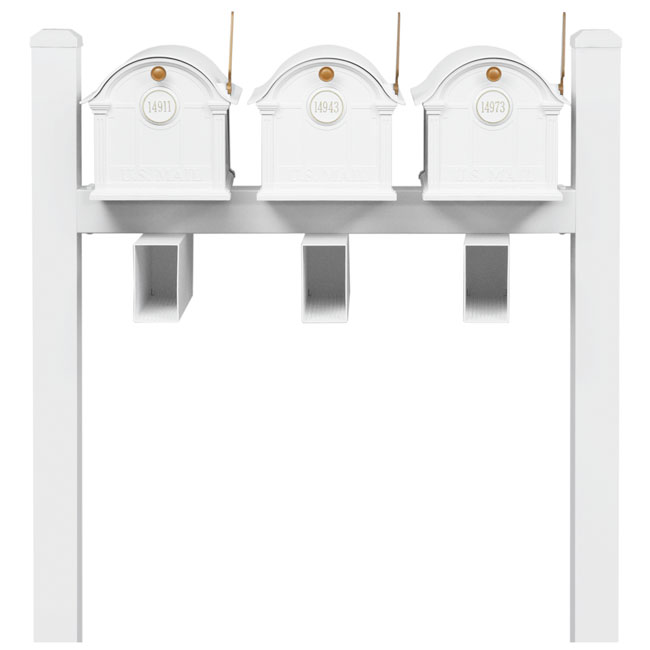 Whitehall deluxe custom balmoral mailbox trio, white/gold
