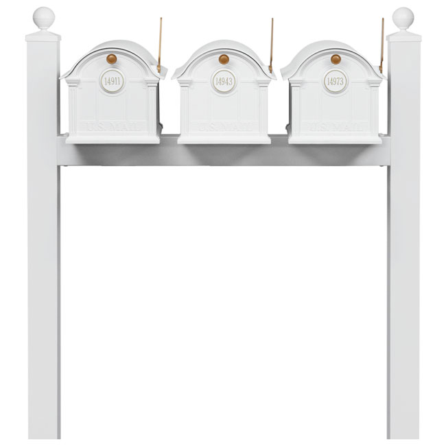 Whitehall grand custom balmoral mailbox trio, white/gold