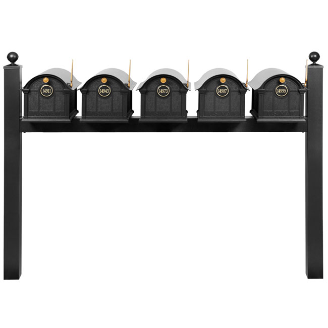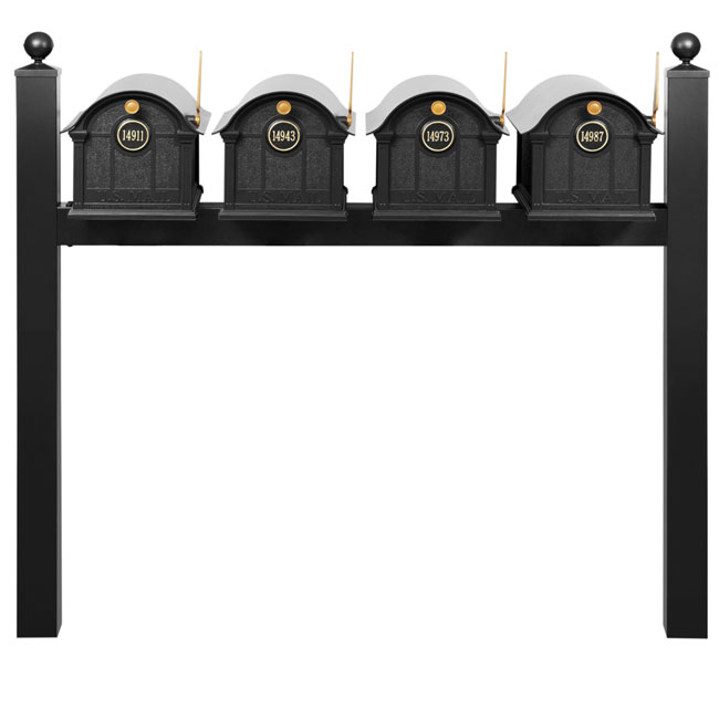 Whitehall grand custom balmoral mailbox quad, black/gold