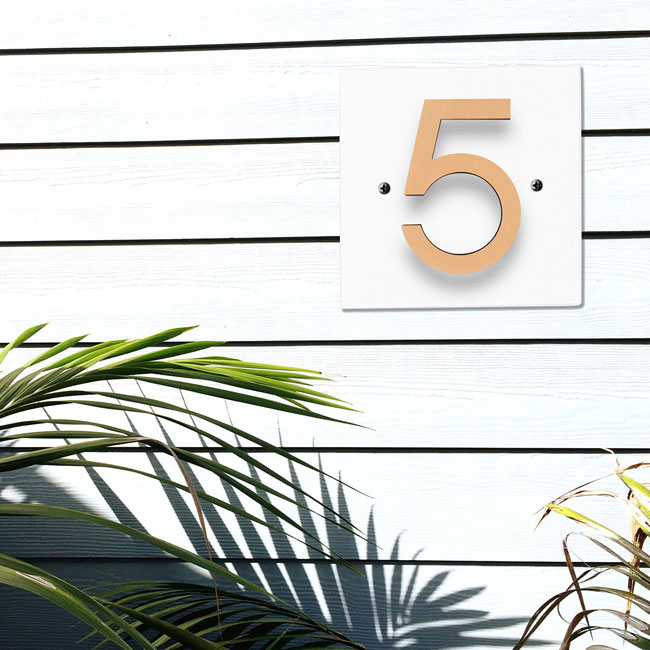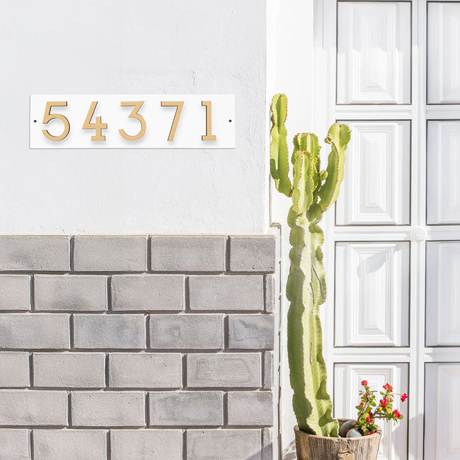 Bring style and sleek charm to your address display using this Whitehall 5 Digit White and Gold Floating Horizontal Address...