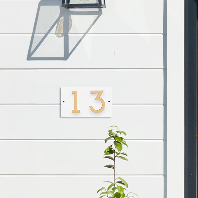 Bring style and sleek charm to your address display using this Whitehall 2 Digit White and Gold Floating Horizontal Address...
