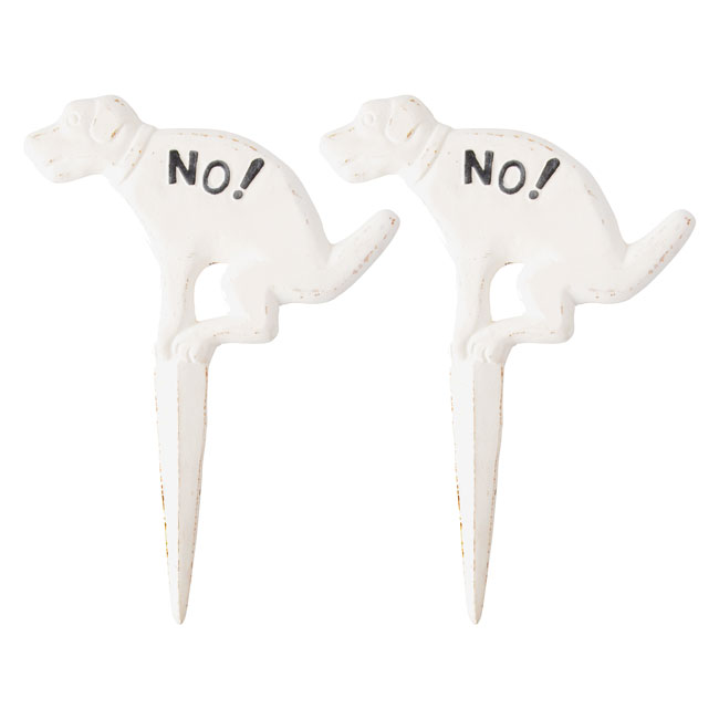 Define two sections of your lawn as off limits for dogs with this pair of Esschert Design White Cast Iron "NO!" Pooping Yard Signs.