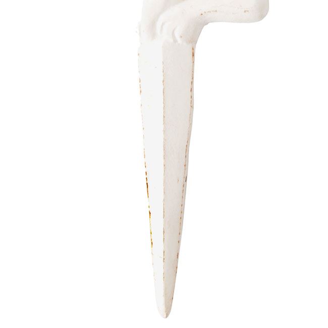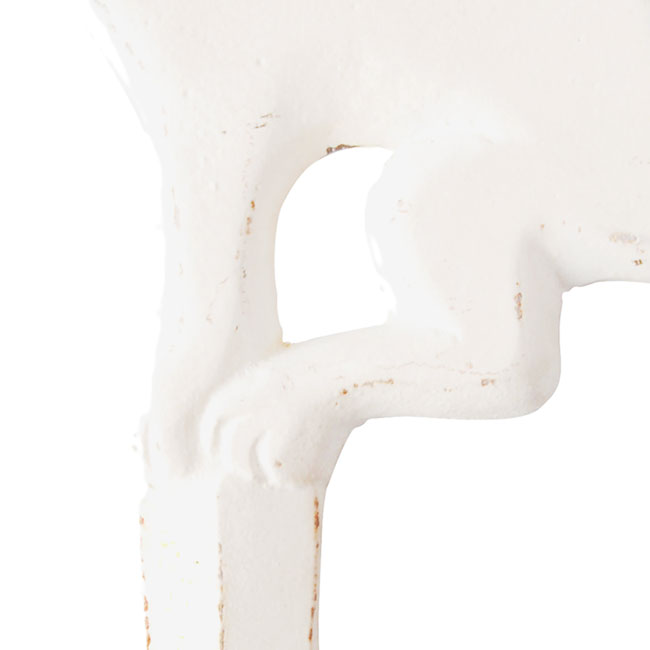 • Aged white finish atop the cast iron body offers definition and the distressed edges add style