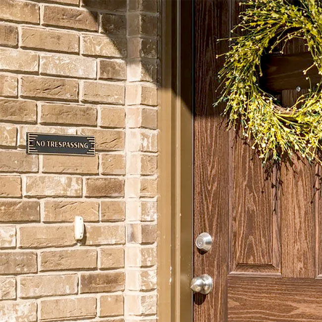• Neatly displayed "No Trespassing" message keeps unwanted visitors away from your property