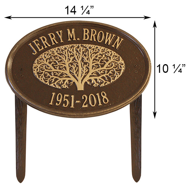 - Robust, cast aluminum marker with stylized, center oak tree design capturing attention